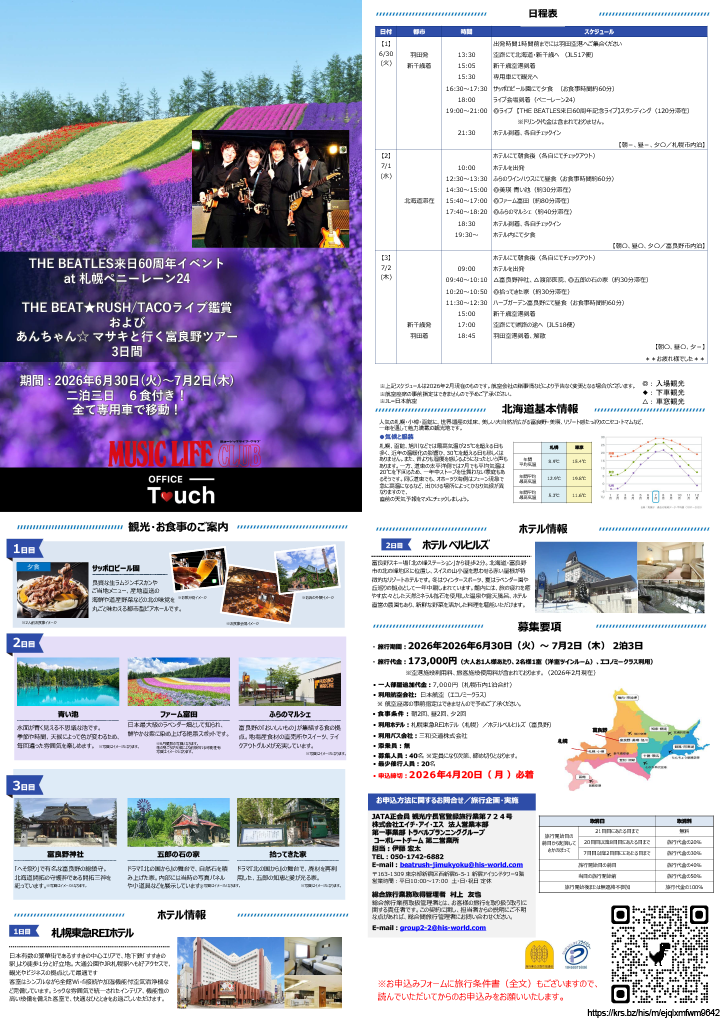 THE BEAT★RUSH あんちゃん☆ マサキと行く富良野ツアー募集開始