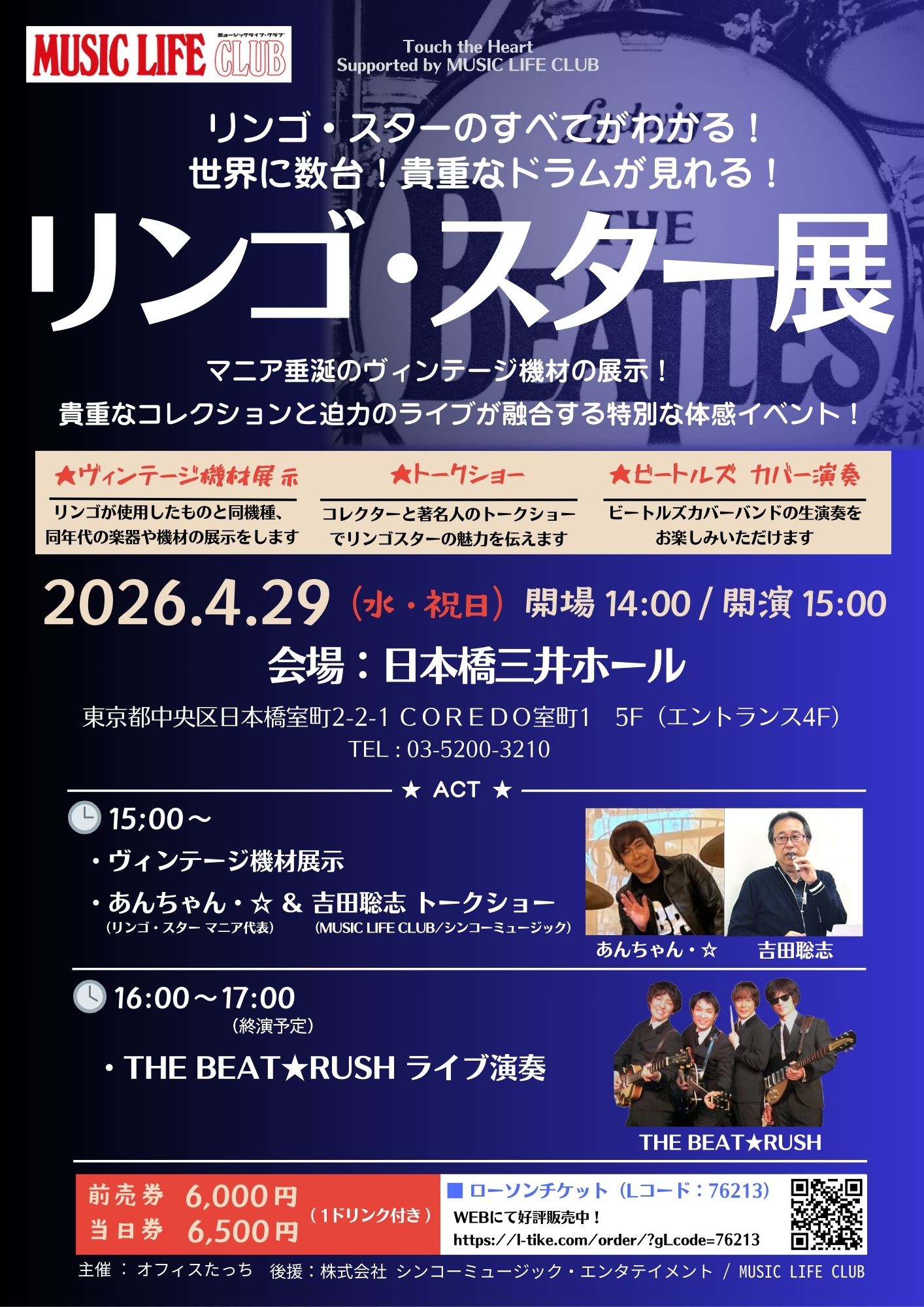 リンゴスター展 Lコード:76213|ローチケ[ローソンチケット] コンサートチケット情報・販売・予約 | ローチケ(ローソンチケット)